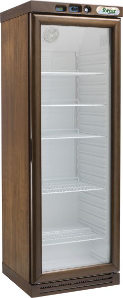 Cantinetta per vini realizzata in legno e dotata di porte con telaio in legno massiccio e vetrocamera. Dispone di refrigerazione di tipo statico con evaporatore in piastra di alluminio posizionato sulla parete di fondo e di termoregolatore per il controllo automatico della temperatura (Ventilatore interno collegato direttamente all'alimentazione per rendere uniforme, in tutti i vani, la temperatura). Evaporazione acqua di condensa automatica, illuminazione a plafoniera comandata da interruttore.
