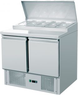 Saladette refrigerata statica per pizzeria con struttura interna ed esterna realizzata interamente in acciaio inox. Refrigerazione statica. Gruppo incorporato e termostato digitale per il controllo della temperatura. Spessore isolamento 35 mm e sbrinamento automatico. Idoneo a contenere bacinelle Gastronorm inox policarbonato (bacinelle e coperchi esclusi).