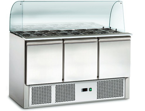 Saladette refrigerata statica per pizzeria con struttura interna ed esterna realizzata interamente in acciaio inox. Refrigerazione statica. Gruppo incorporato e termostato digitale per il controllo della temperatura. Spessore isolamento 35 mm e sbrinamento automatico. Idoneo a contenere bacinelle Gastronorm inox policarbonato (bacinelle e coperchi esclusi).