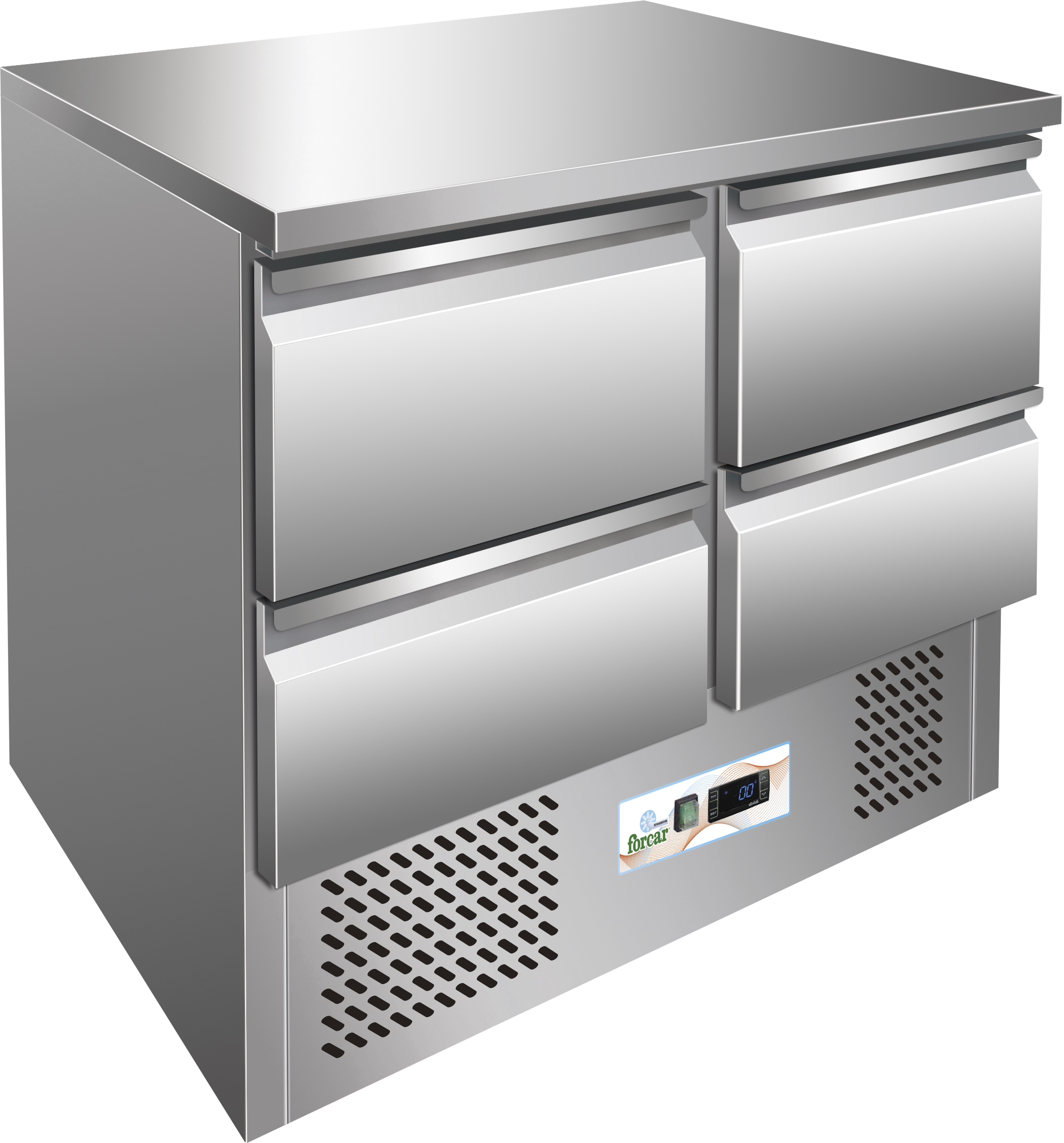 Saladette refrigerata statica con struttura e piano di lavoro in acciaio inox AISI 304.