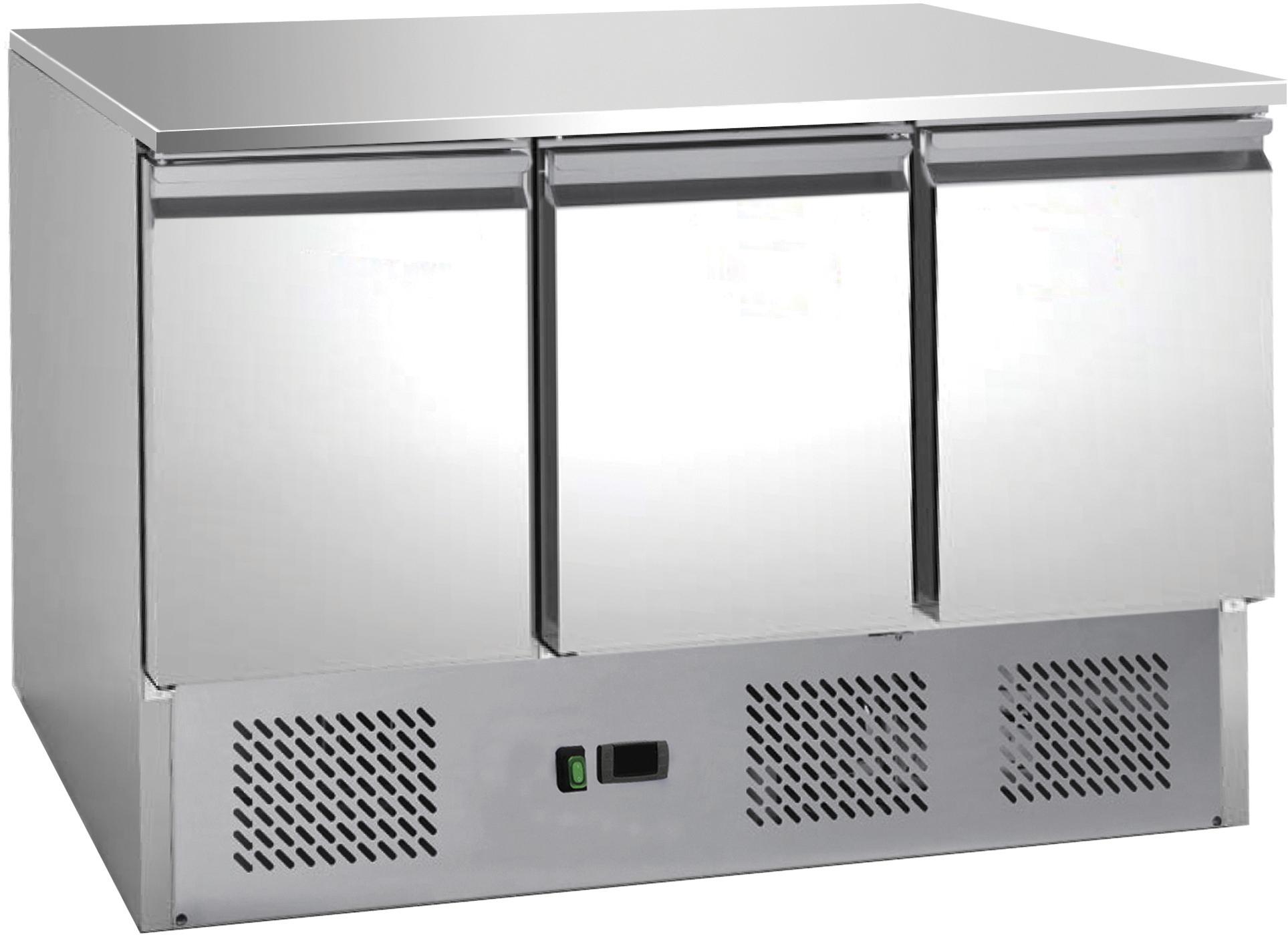 Saladette refrigerata statica con struttura e piano di lavoro in acciaio inox AISI 201.