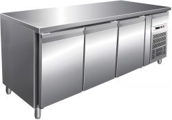 Banco Snack refrigerato ventilato con struttura interna ed esterna realizzata interamente in acciaio inox AISI 304. Refrigerazione ventilata con evaporatore ad alette trattato anticorrosione. Ricircolo aria fredda. Gruppo incorporato. Termostato digitale per il controllo della temperatura e dello sbrinamento. Resistenza elettrica inserita nella cornice della porta per l'eliminazione della condensa. Evaporazione automatica dell'acqua di condensa. Spessore isolamento 60mm. Guarnizione magnetica facilmente estraibile. Interno con angoli arrotondati per facilitare la pulizia. Chiusura pannello frontale con chiave. Piedini in AISI 304 regolabili. Pannello posteriore in acciaio inox