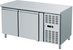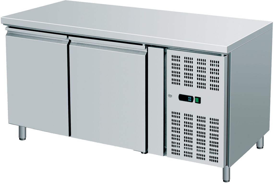 Tavolo refrigerato con Struttura interna ed esterna realizzata interamente in acciaio inox AISI 304. Refrigerazione ventilata con evaporatore ad alette trattato anticorrosione. Ricircolo aria fredda. Gruppo incorporato. Termostato digitale per il controllo della temperatura e dello sbrinamento. Resistenza elettrica inserita nella cornice della porta per l'eliminazione della condensa. Evaporazione automatica dell'acqua di condensa. Spessore isolamento 60 mm. Guarnizione magnetica facilmente estraibile.Interno con angoli arrotondati per facilitare la pulizia. Chiusura pannello frontale con chiave. Piedini in acciaio inox AISI 304 regolabili. Pannello posteriore in acciaio inox.