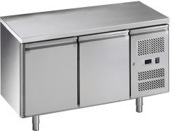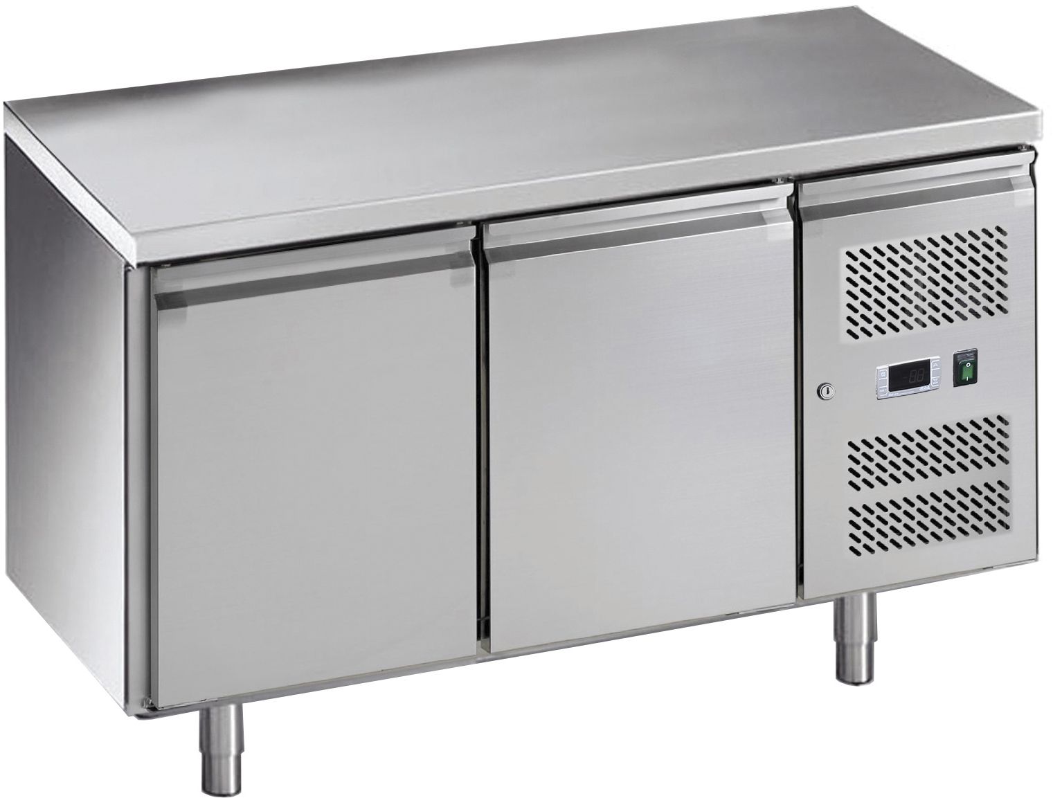 Tavolo realizzato in acciaio inox AISI 304. Refrigerazione ventilata. Gruppo incorporato estraibile per facile manutenzione. Pannello frontale apribile con chiave. Andamento circolare dell'aria fredda in modo da non toccare direttamente il prodotto. Controllo temperatura elettronico con termostato digitale.