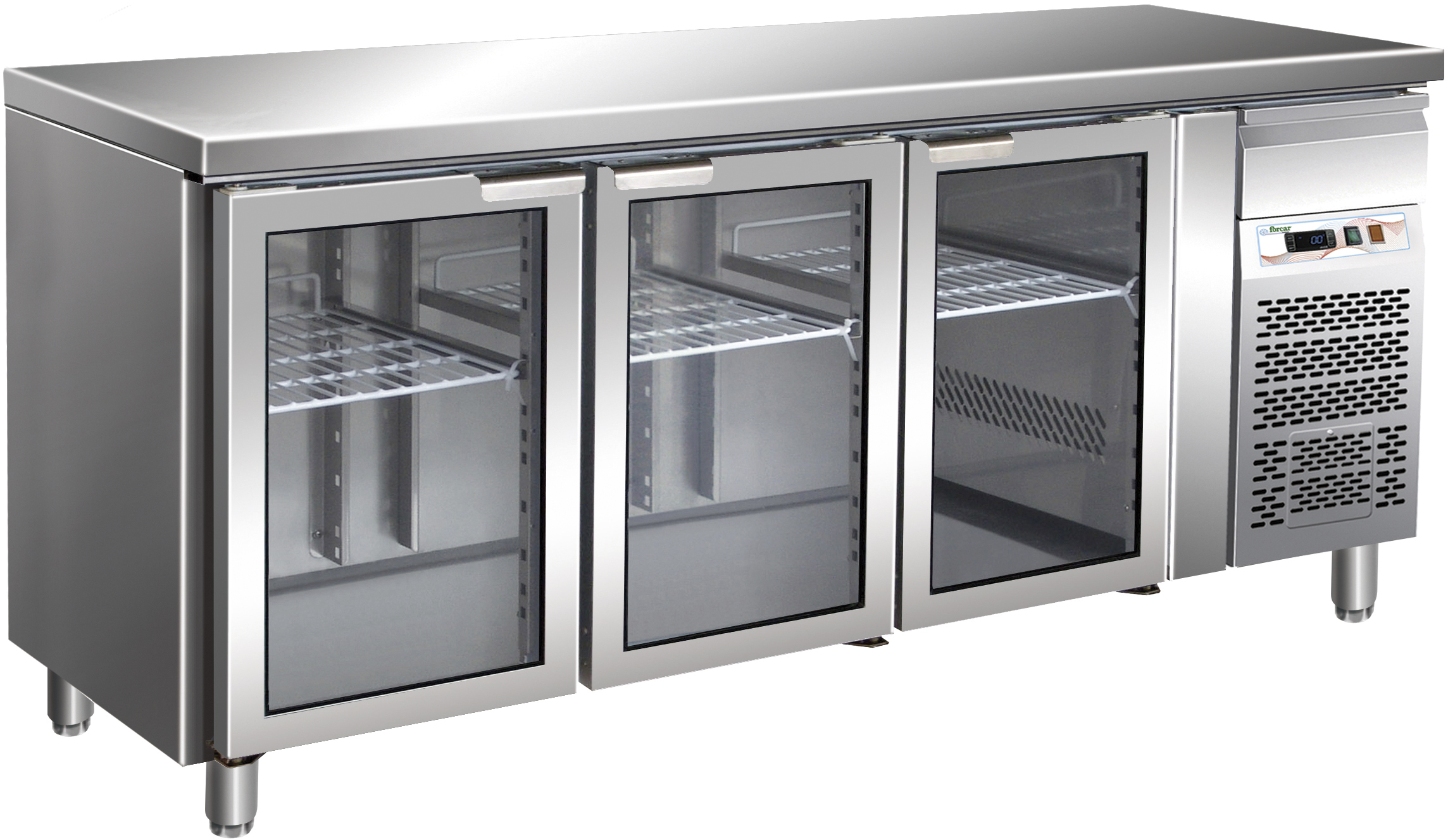 Tavolo realizzato in acciaio inox AISI 304, dotato di piedini regolabili e schienale in acciaio inox con possibilità di appoggiare al muro. Dispone di controllo temperatura elettronico con termostato digitale, refrigerazione ventilata e gruppo incorporato estraibile per facile manutenzione. Pannello frontale apribile con chiave. Andamento circolare dell'aria fredda in modo da non toccare direttamente il prodotto. Fornito di resistenza elettrica intorno alla cornice porta (per eliminazione della condensa), sbrinamento automatico con resistenza elettrica e controllo automatico della temperatura di sbrinamento. Evaporazione automatica dell'acqua di condensa con evaporatore trattato anticorrosione. Porta con molla di ritorno e guarnizione estraibile senza utensili. Fondo con angoli arrotondati. Facile intercambiabilità porte con cassettiere da due e tre cassetti. Cassettiere con guide telescopiche in acciaio inox a totale estraibilità.