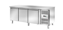 Tavolo refrigerato per pasticceria con struttura interna ed esterna realizzata interamente in acciaio inox AISI 304. La refrigerazione è ventilata con evaporatore ad alette trattato anti-corrosione. Presente ricircolo aria fredda. Gruppo incorporato estraibile. Il tavolo ha un termostato digitale per il controllo della temperatura e dello sbrinamento. Resistenza elettrica inserita nella cornice della porta per l'eliminazione della condensa. Evaporazione automatica dell'acqua di condensa. Spessore isolamento 60 mm. Guarnizione magnetica facilmente estraibile. Interno con angoli arrotondati per facilitare la pulizia. Sono presenti chiusura pannello frontale con chiave, piedini in AISI 304 regolabili e pannello posteriore in acciaio inox.