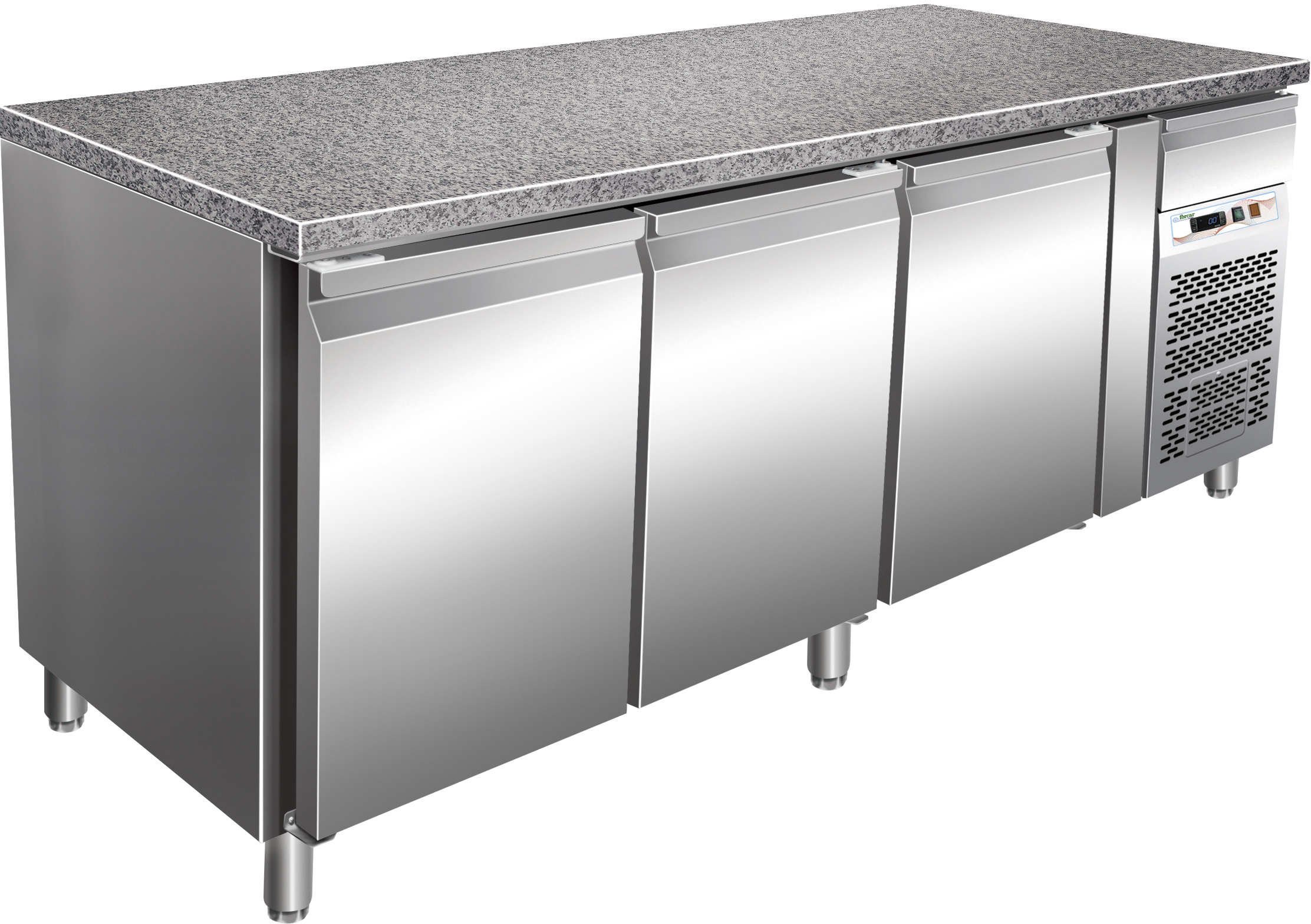 Tavolo refrigerato pasticceria con struttura in acciaio inox AISI 304. Refrigerazione ventilata. Pannello di controllo elettronico con display digitale. Sbrinamento ed evaporazione dell'acqua di sbrinamento automatici. Unità di condensa estraibile. Porta reversibile con guarnizioni magnetiche. Angoli interni arrotondati. Piedi regolabili in acciaio inox AISI 304. Porta con molla di ritorno. Schienale in acciaio inox possibilità di appoggiare al muro.
