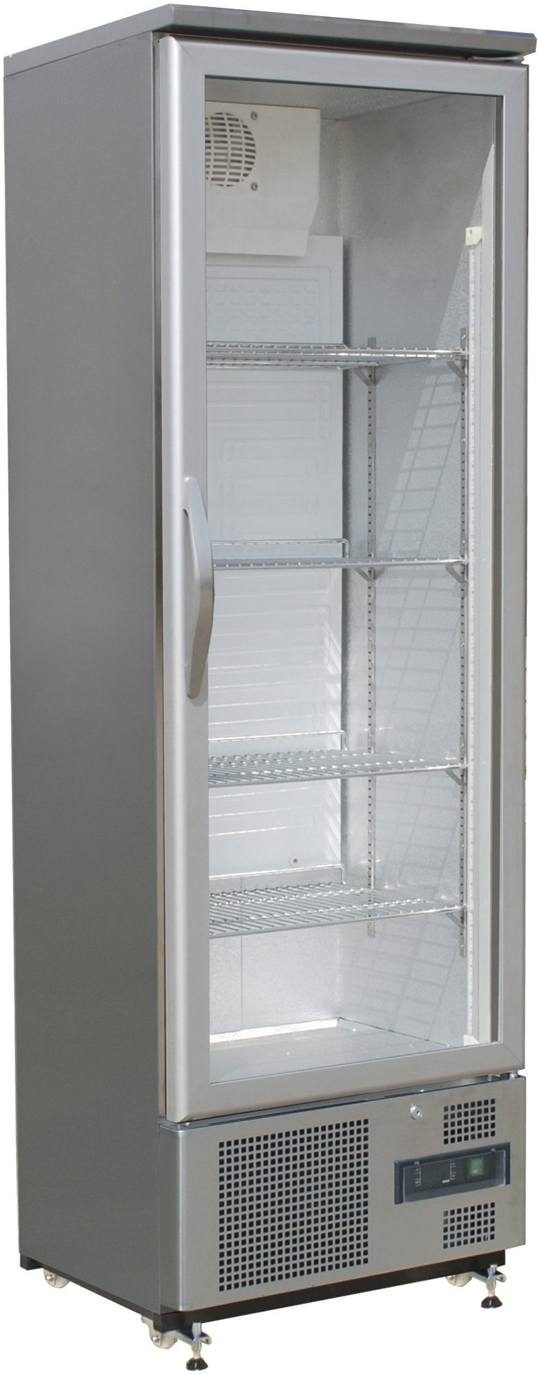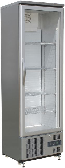 Vetrinetta espositiva refrigerata con porta in vetro camera. Realizzato esternamente in acciaio inox, mentre all'interno in alluminio. Refrigerazione statica, sbrinamento automatico, controllo temperatura con termostato digitale. Temperatura di lavoro +2+8°C. Illuminazione interna a LED. E' dotato, inoltre, di 2 piedini regolabili per una facile movimentazione.
