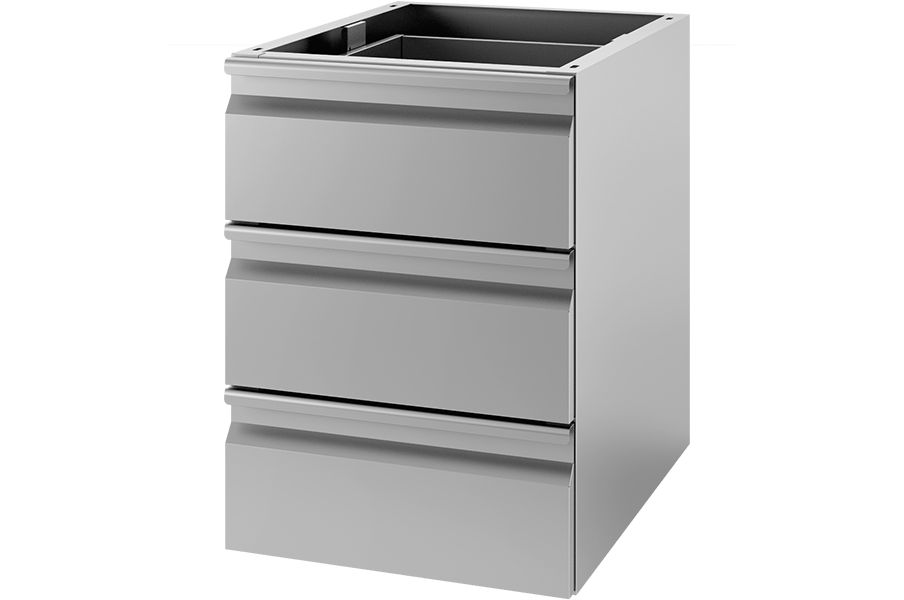 Cassettiera a 3 cassetti professionale realizzata in acciaio Inox, altamente stabile e dotata di piedini regolabili. Il nostro ufficio tecnico è disponibile a realizzare prodotti con dimensioni e forme diversi dalla nostra gamma.