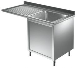 Lavatoio Armadiati Inox Con Vano Lavastoviglie, 1 Vasca Con Gocciolatoio a Sinistra e Anta Battente 1400x700x850h