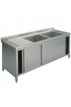 Lavatoio Inox Armadiato 2 Vasche Gocciolatoio a Sinistra 1600x600x850h