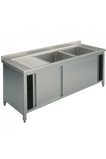 Lavatoio Inox Armadiato 2 Vasche Gocciolatoio a Sinistra 1800x700x850h