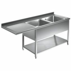 Lavatoi gambe inox con vano lavastoviglie, 2 vasche con gocciolatoio a sinistra profondità 600