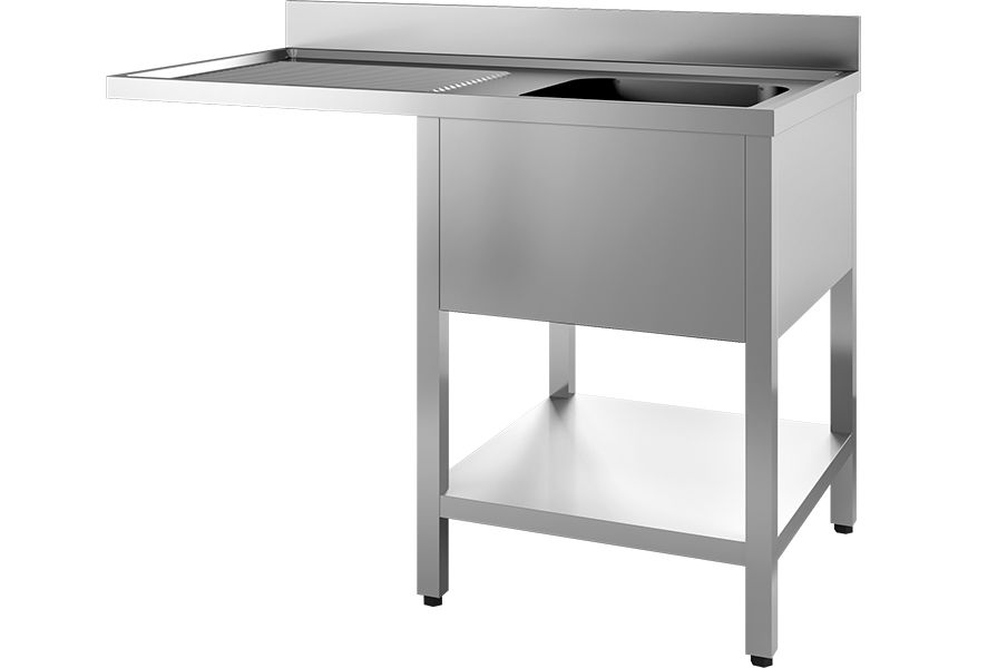 Lavatoio Gambe Inox con Vano Lavastoviglie, 1 Vasca e Gocciolatoio a Sinistra 1200x700x850h