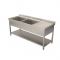 Lavatoio Inox Gambe Quadrate 2 Vasche Con Gocciolatoio a Destra 1500x600x850h