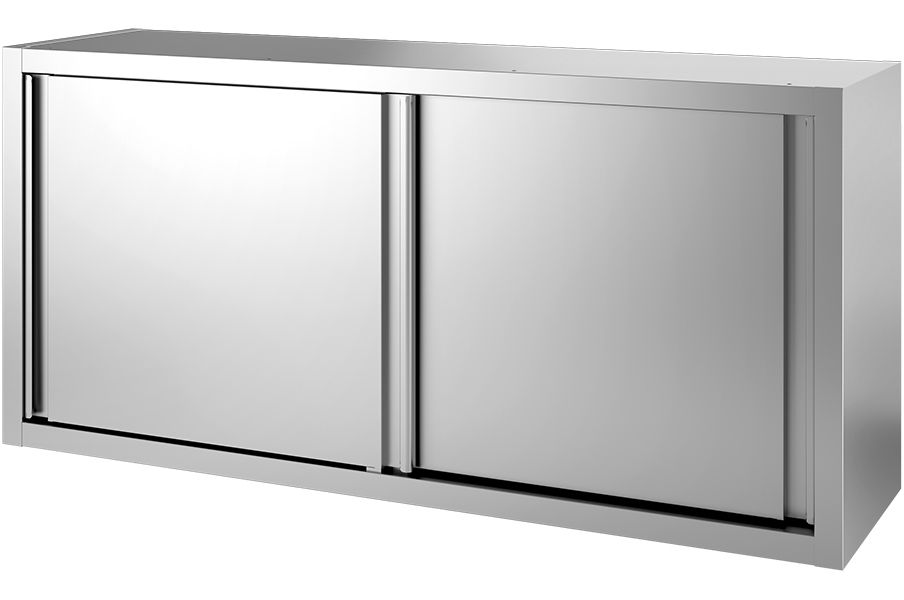 Pensile professionale realizzato in acciaio Inox, altamente stabili, dotato di piedini regolabili e con ante scorrevoli.