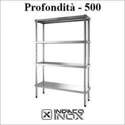 Scaffali inox con 4 ripiani altezza 2000 profondità 500