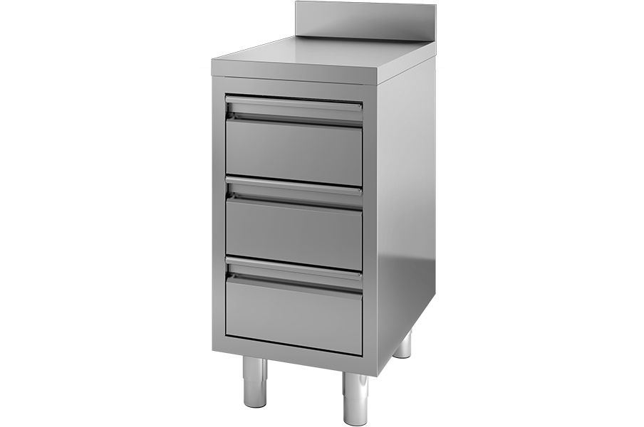 Tavolo armadio professionale realizzato in acciaio Inox altamente stabile, dotato di piedini regolabili e alzatina. Il nostro ufficio tecnico è disponibile a realizzare prodotti condimensioni e forme diversi dalla nostra gamma.
