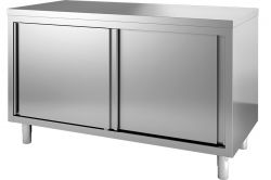 Tavolo armadiato professionale realizzato in acciaio Inox altamente stabili, dotato di piedini regolabili e ante scorrevoli. Il nostro ufficio tecnico è disponibile a realizzare prodotti con dimensioni e forme diversi dalla nostra gamma.