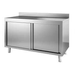 Tavolo Armadiato Inox Passante 800x1500 a Porte Scorrevoli e Alzatina