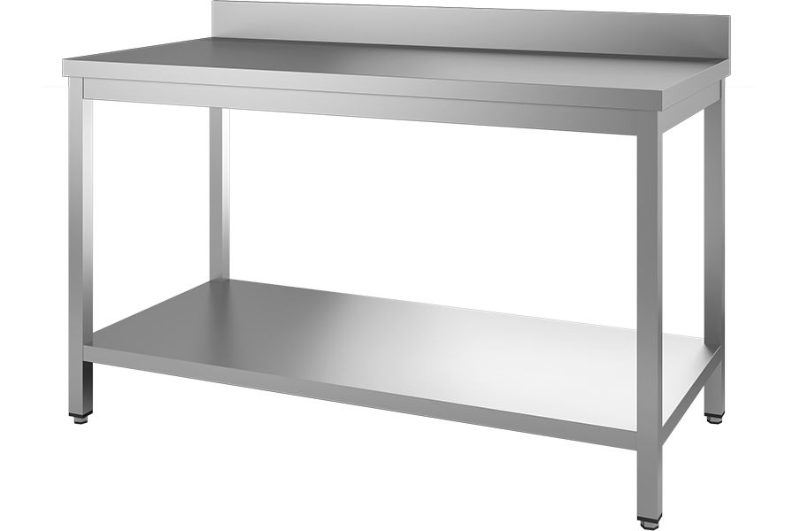 Tavolo professionale realizzato in acciaio Inox , altamente stabile, dotato di piedini regolabili e di alzatina.
